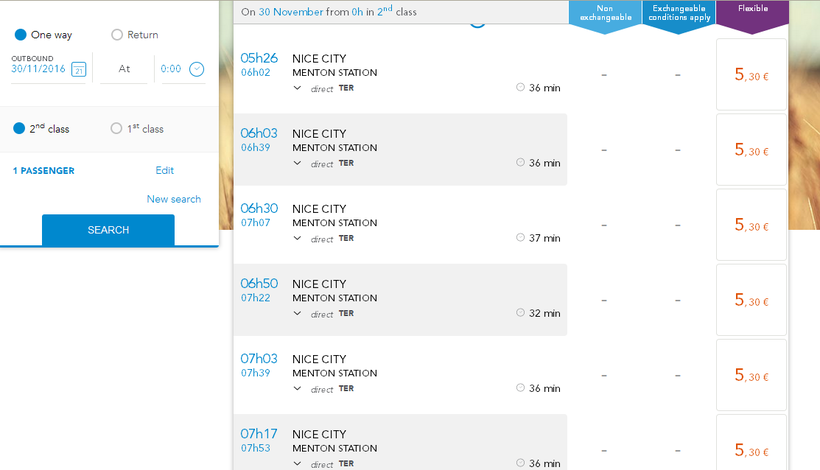 Проезд на поезде из Ниццы в Ментон обойдется в 5,30 евро. На пару поездов билет стоит чуть дороже – около 4,50 евро.