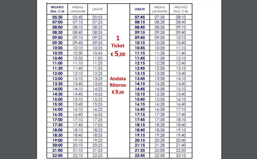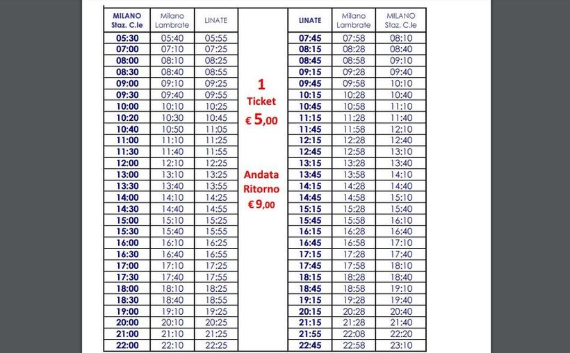 - цена билета на автобус компании Malpensa Shuttle будет составлять 10 евро.