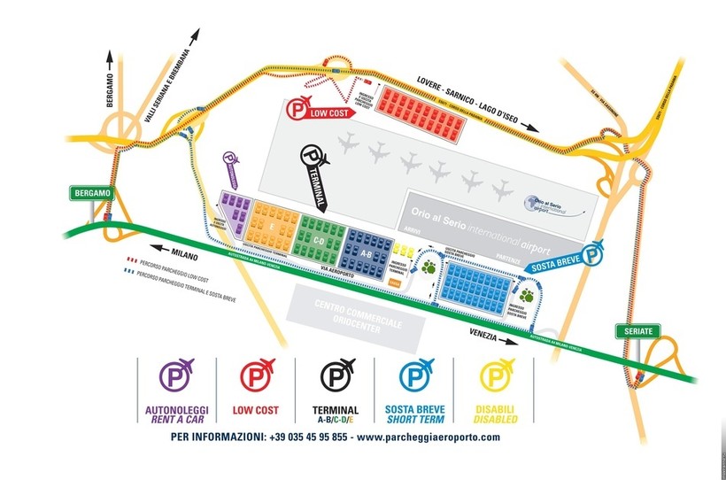 Хотя данный аэропорт расположен ближе к Бергамо, но обслуживает он в частности и Милан, а также его окрестности. Со схемой терминала можно ознакомится ниже: