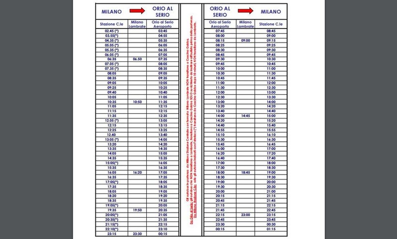 Данная компания обеспечивает трансфер как между миланскими аэропортами, так и в разнообразных направлениях на выезд из города. Время отправления автобуса: в 07:40, следующий в 09:10, потом в 17:30, далее в 18:30, и два последних рейса в 19:40 и в 20:40. Время поездки составляет около получаса. Таким образом, время отправления автобуса является не совсем удобным, если прибытие авиарейса происходит в дневное время. Зато вечером довольно много рейсов, что обусловлено графиком прибытия самолетов, большинство из них происходит именно в вечернее время.