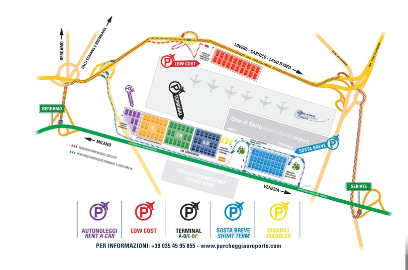 «Orio al Serio», конечно, менее комфортный для пассажиров, он состоит из одного терминала и здесь меньше магазинов, кафе и прочих сервисов, сиденья в зале ожидания не самые удобные и интернет местами не работает, но это и не главное. Максимальный дискомфорт доставляет то, что при большом пассажиропотоке может не хватить мест для сидения, придется гулять по территории в ожидании рейса и хорошо, если его не задержат. Приятным бонусом является то, что как и в «Malpensa», есть услуга Tax Free. Подробно познакомиться со структурой аэропорта можно на его официальном сайте