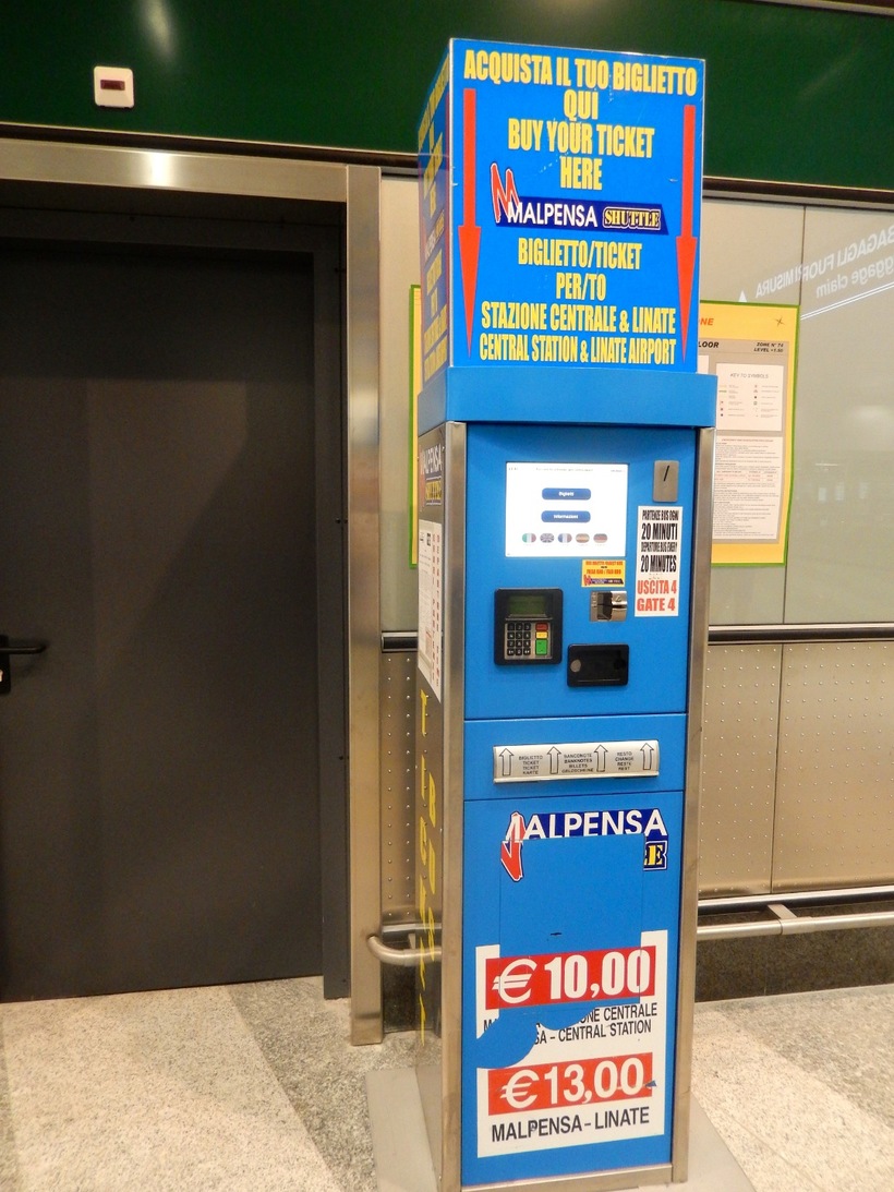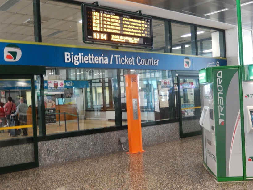 Аэропорт находится далековато от города, поэтому так нежно любимый мною поезд здесь один из самых подходящих вариантов. Ж/д станция расположена очень удобно, на нижнем этаже Т1, даже на улицу выходить не надо, просто спуститесь на эскалаторе. чтобы не заблудиться, найдите указатели «Train» в зале прилетов, и следуйте им. Прямой экспресс «Malpensa Express» довезет до станций «Cadorna» и «Milano Centrale» в центре города, (проезжая по пути станции «Milano Bovisa», «Saronno», «Busto Arsizio») ходят они с 4.30 до 00.30 с интервалом 30 минут. А на поезде «Trenitalia» можно добраться до станции «Gallarate». Обычно на то чтобы добраться до центра Милана уходит 45-50 минут. На самом деле, железнодорожные маршруты здесь довольно загадочные экспресс с одним названием может следовать через разные станции, я бы рекомендовала всегда уточнять у кассира не только название поезда, но и нужную остановку, так надежней:)