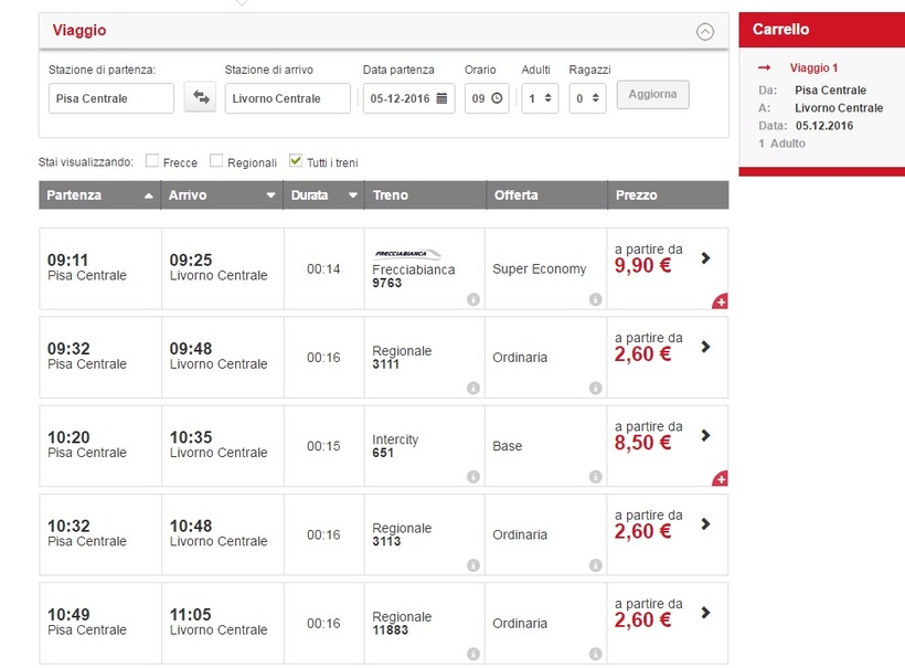 Билет на автобус стоит 1,5-2 евро. Билет на поезд стоит от 2,6 до 8,5 евро. Путешествие на скоростном поезде обойдется существенно дороже, но в случае поездки в Ливорно, время вы не сэкономите.