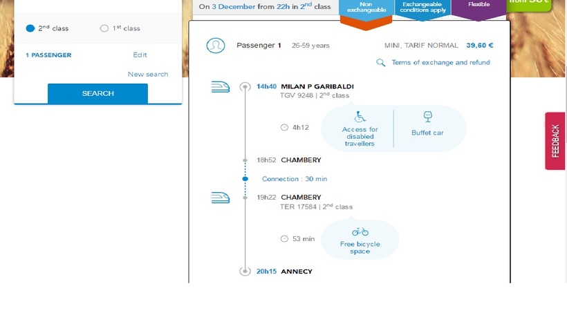 Конечно же, в первую очередь я напишу о своем любимом виде транспорта:) Добраться из Милана в Анси на поезде совсем несложно, это один из самых удобных и быстрых вариантов проезда. На мой взгляд, самый удобный железнодорожный маршрут предлагает фирма sncf, на вполне комфортном экспрессе, идущем от вокзала Milano Porta Garibaldi в 14.40 можно добраться до города Chambery всего за 4 часа, а там сделать пересадку на пригородный электропоезд до Annecy, дорога на нем займет еще около часа. Между поездами будет около 30 минут свободного времени, если, конечно, все без опозданий:)