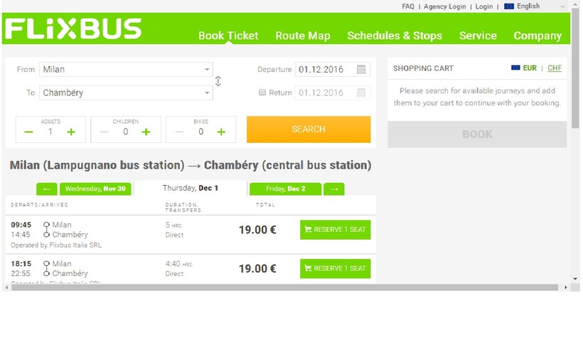 Еще одни интересный и довольно бюджетный вариант проезда из Милана в Анси – ночной автобус, к сожалению, как и поезд, с пересадкой в Chambery. Этот автобус идет от Lampugnano bus station в Милане дважды в день, утром и вечером, доезжает до конечного пункта всего за 5 часов.