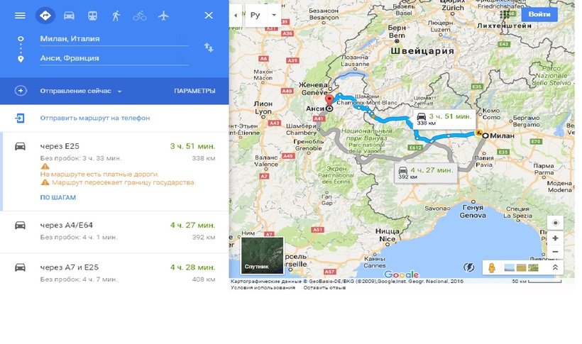 Не стоит забывать и об автомобиле, самом комфортном и быстром виде транспорта. От Милана до Анси, примерно, 340 км, и на проезд уйдет всего 3-4 часа, смотря как часто останавливаться и любоваться красотами:) Если нужен автомобиль в аренду, можно воспользоваться этим сервисом