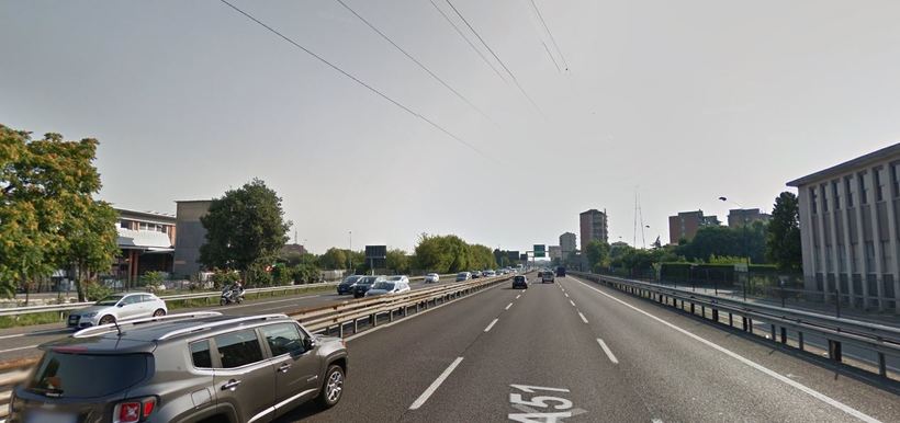 На выезд из Милана нужно выходить по автодороге имеющей шифр SP-11. Она проходит по городской застройке и имеет вот такой вид: