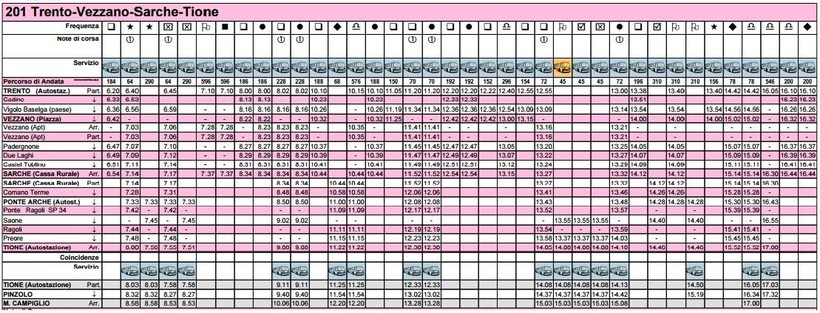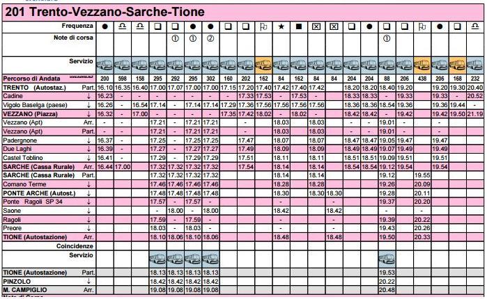 Недалеко от остановки, куда привозит Flixbus пассажиров из Милана, и рядом с ЖД вокзалом находится остановка автобусов до Мадонны ди Кампильо. Компания Trentino Trasporti Esercizio совершает 12 отправлений в сутки с 06:40 до 18:40. Автобус №201 ездит каждые 5 минут-2,5 часа, а ехать до Мадонны чуть более 2 ч. Билеты продаются в интернете, в кассах, в терминалах и в салоне автобуса. Стоимость – около 6 евро.