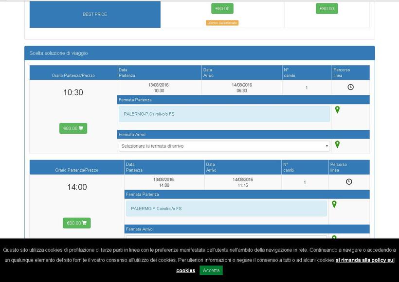 Ночной поезд прямого сообщения Палермо – Милан выезжает и приезжает на центральные вокзалы обеих городов. В пути он находится более двадцати часов, а с учетом того, что цены на него не сильно отличаются от некоторых цен на самолете, то поезд не выглядит как целесообразный вариант. Также есть еще несколько дневных рейсов, но ехать на них еще более неудобно. Хотя для тех, кто боится летать, предоставлю краткую информацию.