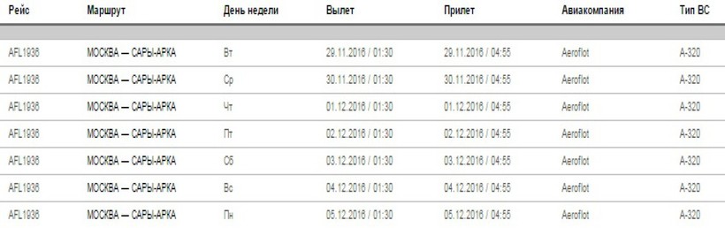 - вторник - три рейса в 09.10, 18.30 и 23.05;