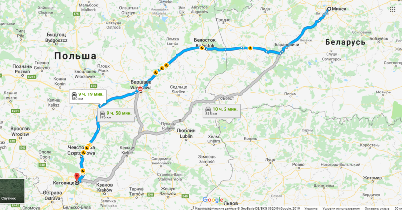 Если вы путешествуете на собственном авто, этот способ как раз для вас. Маршрут, на самом деле, несложный, дороги по пути очень хорошие. Но вот за рулем беспрерывно провести 10 часов сможет не каждый. Будет супер, если у вас два водителя в машине, которые могут меняться. От Минска до Катовице 850 км, если ехать по трассе S8 через Варшаву и Ченстохову.
