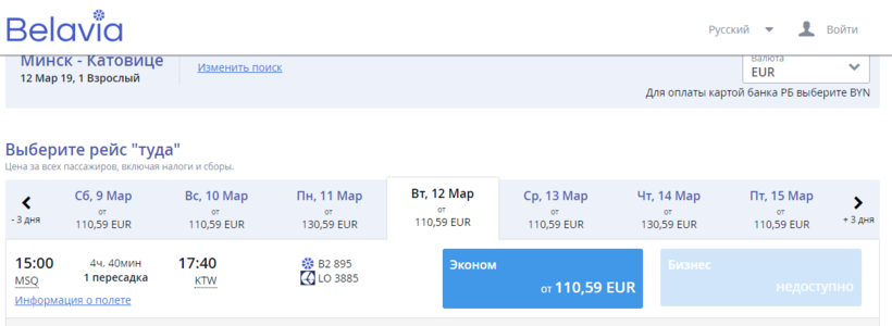 Этот способ предполагает одну пересадку в Варшаве, но я его все равно рекомендую тем, кому не подходят автобусы и кто не располагает большим количеством времени. По этому маршруту летают такие авиакомпании как, к примеру, Wizz Air, LOT, Belavia. По соотношению цена/время в пути мне больше всего понравился такой рейс: за 4 часа 40 минут (включая время на пересадку в Варшаве) Belavia совместно с LOT доставят вас из Международного аэропорта Минск до воздушной гавани Катовице-Пыжовице. Вылет в 15:00, прилет в 17:40 по польскому времени.