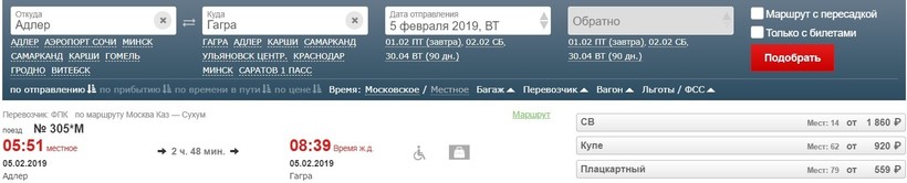 Но вот время отправления поезда в Гагру очень неудобное. Так что этот вариант подойдет далеко не всем.