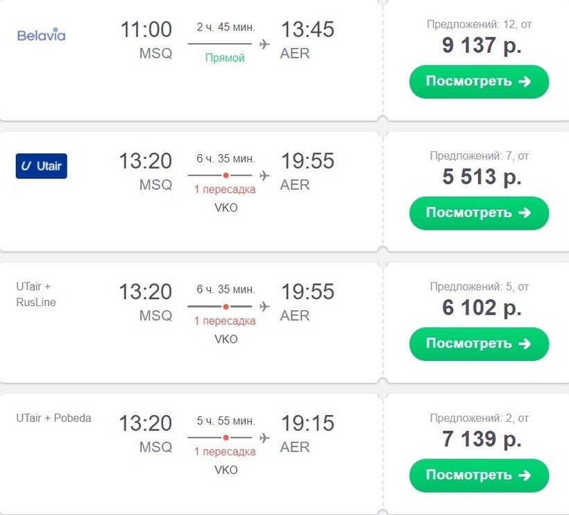 Билеты до Сочи от 180 белорусских рублей (от 5500 российских рублей). Дешевле летать с пересадками, чем прямым рейсом.