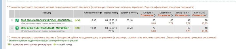 Можно воспользоваться и поездом, правда, железнодорожных рейсов намного меньше. Где находится железнодорожный вокзал в Минске я уже показал выше, так что сразу перейду к описанию расписания. Для этого рекомендую заглянуть на официальный сайт беларусских железных дорог, и вот что он покажет: