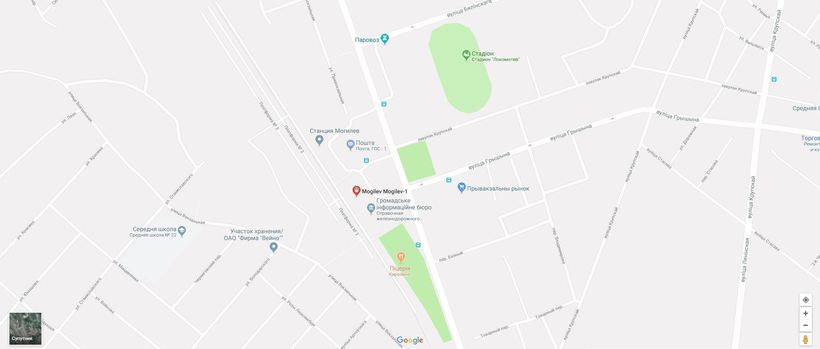 Как видно, есть разные типы вагонов. Наиболее некомфортный тип вагонов – общий, наиболее комфортабельные вагоны – купейные. Честно говоря, особенных преимуществ у поезда нет, разве что наличие туалета выгодно отличает его от автобусов. Во всем остальном же никаких преимуществ не будет. А, разве что места под багаж в поезде побольше. Ехать предстоит столько же, сколько и на автобусе, около 3,5 часов. Прибывают поезда на вокзал Могилев-1, располагающийся тут: