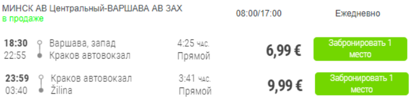 А из Варшавы до Кракова и из Кракова в Жилину проезд обойдется в 17 евро.