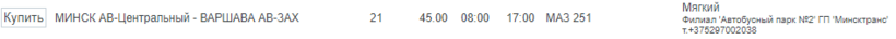 - выезд из Минска в 08:00 и прибытие в Варшаву в 17:00;