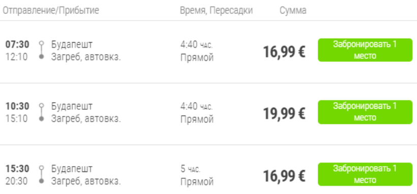 А из Будапешта в Загреб добраться за 5 часов каждый день можно, выехав в 07:30, 10:30 или 15:30.