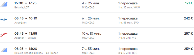 Перелет до Загреба из Минска обойдется от 121 евро (9085 руб.).