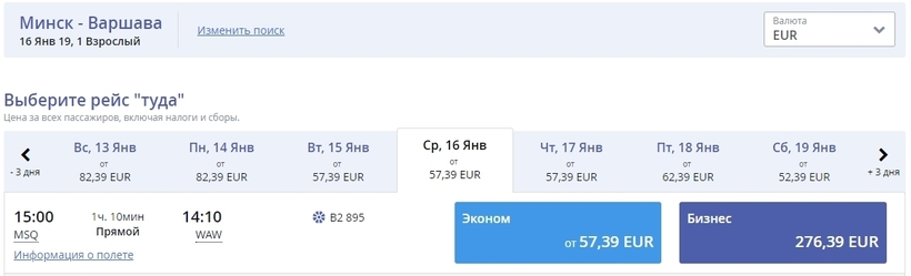 Прямой перелет обойдется от 328 белорусских рублей (134 евро, 12 190 российских рублей).