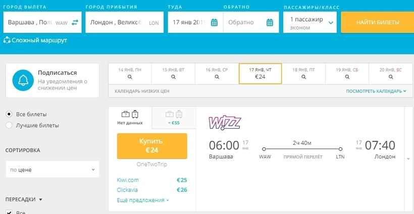 Из Варшавы в Лондон добраться можно лоукостером Wizzair.