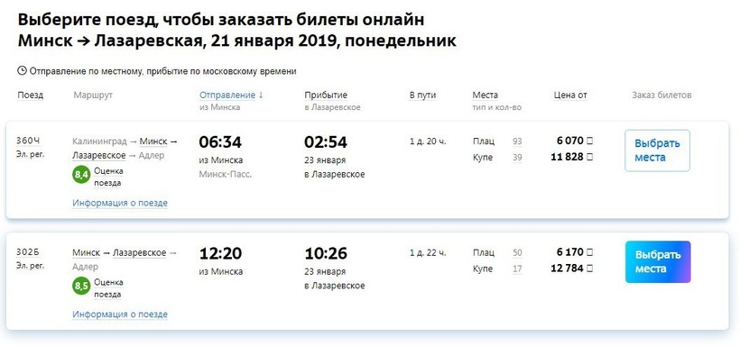 Ниже приведена информация о том, сколько часов вам потребуется, чтобы добраться от Минска до Лазаревского, а также приведена примерная стоимость проезда (средняя цена билета) на том или ином виде транспорта.