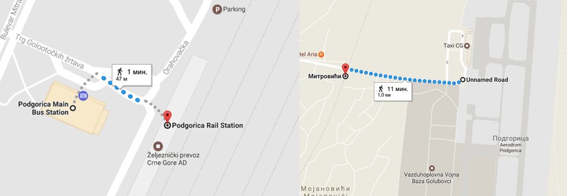 Прямого сообщения аэропорта с Игало не существует, поэтому сначала придется добраться до автовокзала в Подгорице. Для этого потребуется дойти до остановки напротив выхода из зала прибытия южного терминала и дождаться автобуса, который идет в центр город. Особого расписания нет, так как автобусы запустили недавно. Но примерно раз в час они все-таки ходят.