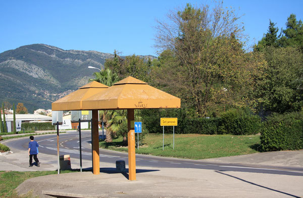 Прямиком из международного аэропорта «Тиват» не получится добраться до Бара. Ни один из автобусов, следующих на черногорские курорты, в аэропорт не заезжает. Нужно будет прогуляться пешком до автобусной остановки. Не переживайте, идти совсем не далеко (это Вам не с чемоданами переться до железнодорожной станции):). Трасса, на которой останавливаются автобусы находится в метрах ста от аэропорта, Вы ее сразу увидите. Трасса называется Jadrancka Magistrala (Она же Адриатическое Шоссе). Когда дойдете до нее, необходимо будет пройти еще метров сто налево. Там по обе стороны дороги Вы увидите такие желтые «грибочки», это и есть автобусная остановка. Имейте ввиду, если Вам нужно уехать в Бар, то будет необходимо встать на остановку, которая находится на одной стороне с аэропортом. Здесь нужно будет остановить любой автобус, который идет в нужном нам направлении. Не переживайте, автобусы здесь абсолютно всегда останавливаются. Появляются автобусы примерно раз в 30 минут. Только уточните у водителя, останавливается ли он в Баре. Говорите по-русски, водитель Вас поймет:) Ехать немногим больше, часа, примерно один час 15 минут. Автобусы очень удобные, можно доехать с комфортом. Но имейте ввиду, ночью уехать практически нереально, последний автобус отправляется в районе 10 вечера, а первый уходит в районе 7-8 утра. Кстати, если Вам очень хочется уехать прямиком из аэропорта, а не идти до остановки, то можно поискать автобус, который приехал за туристической группой. Водители обычно очень охотно берут лишних туристов, если есть свободные места в автобусе. Ведь в этом случае Вы заплатите прямиком водителю в карман:) В Ваш отель Вас могут и не довезти, но до центра города обязательно добросят:)