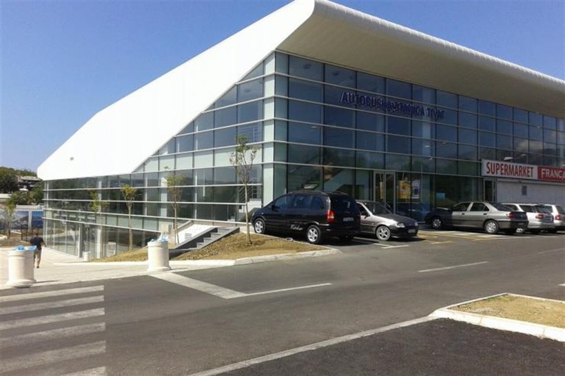 Если Вас не прельщает идея стоять с сумками на жаре и ловить автобус, то можно дойти и до автостанции Тивата ("Autobuska stanica"), только идти придется чуть дальше - около 800 метров. В принципе, минут за 20 дойти вполне возможно. Нужно точно также выйти на Адриатическое шоссе и пойти налево, пока не увидите вот такое вот здание: