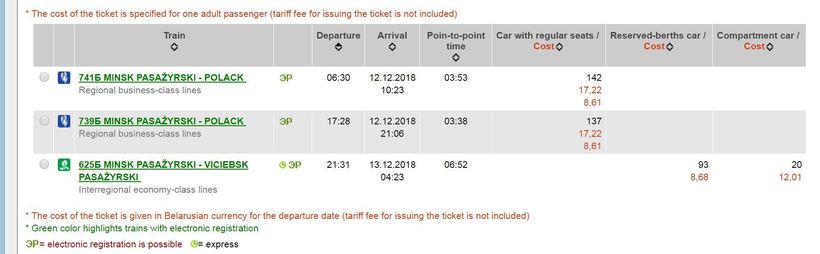 Цена билета на поезд составляет от 9 белорусских рублей (чуть меньше 4 евро).