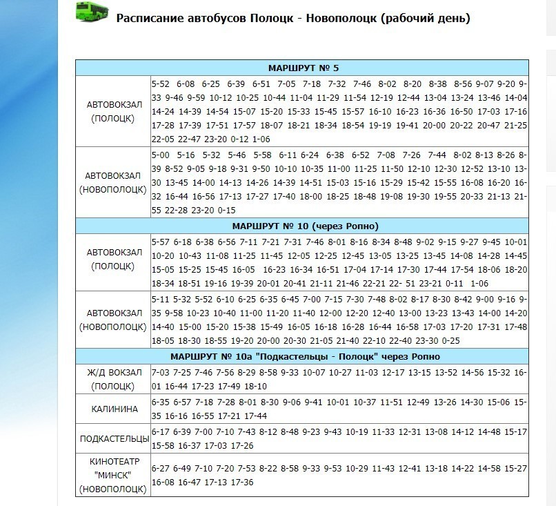 Время в пути составляет как минимум 3,5 часа. На этом путешествие не заканчивается, так как у авто или ЖД вокзала нужно сесть на маршрутку под номером 5, 10 или 10а, на которой и доехать до Новополоцка. На мой взгляд, это слишком уж неудобно.