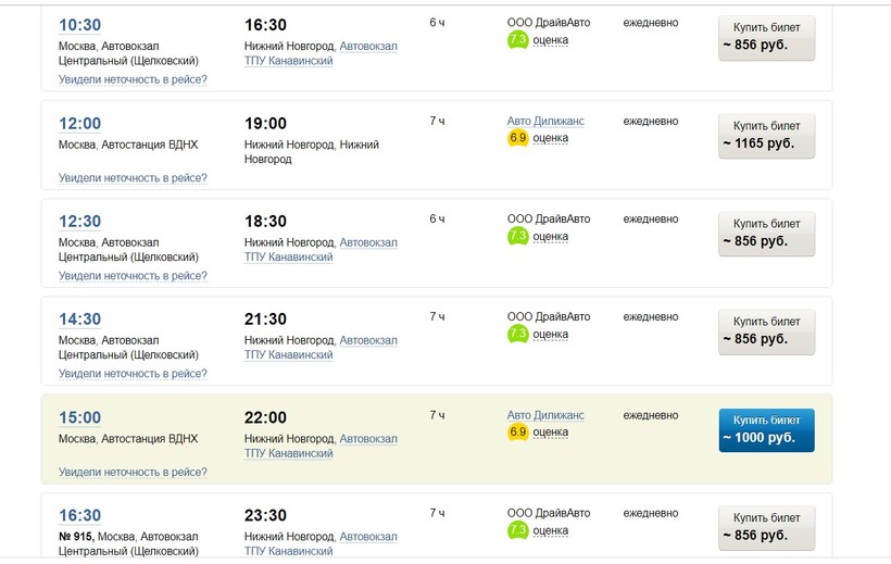 На протяжении дня из Москвы в Нижний Новгород есть примерно полтора десятка рейсов. Все они отправляются с автостанции «Щелковская», а ехать 6-7 часов.