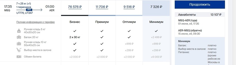 Билеты «ЮТэйр» стоят 421 белорусский рубль (13000 российских рублей).