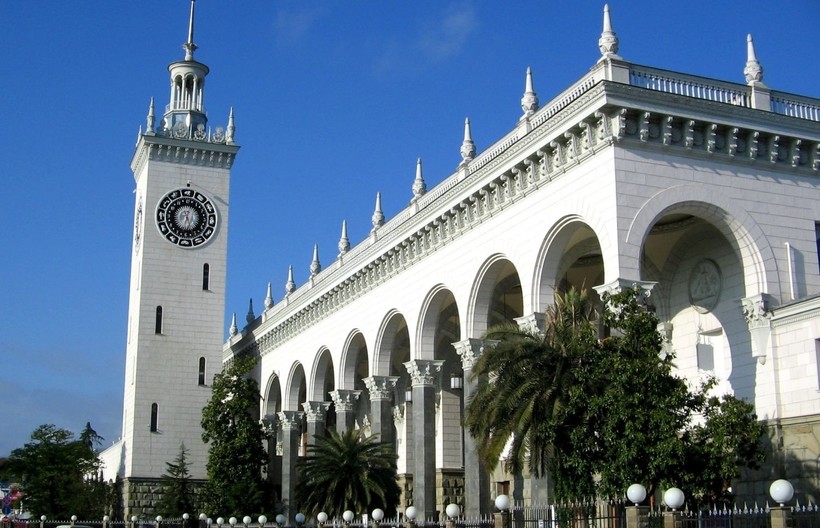 А в Сочи поезда останавливаются на ж/д вокзале Сочи (улица Горького, 56).