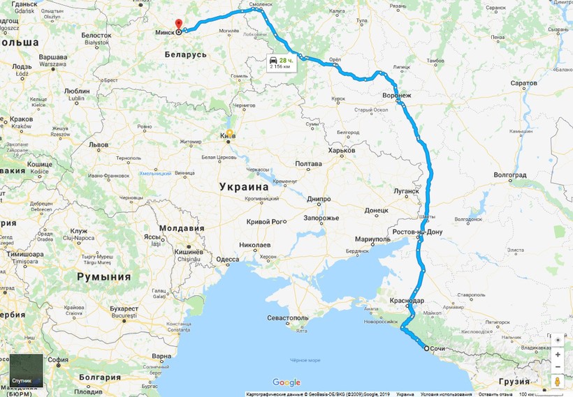 Минск — Сочи — маршрут на карте
