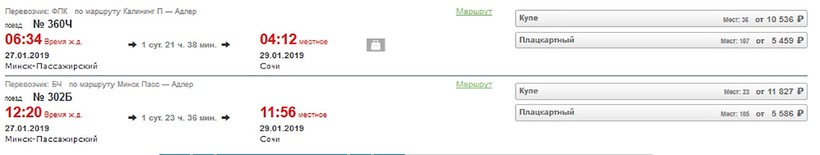 И, конечно, в Сочи можно отправиться на поезде. Есть № 360Ч Калининград — Адлер, от Минска до Сочи ехать без пересадок 1 день 21 час. Этот поезд ходит по нечетным числам, единственный рейс в 6:30 утра.