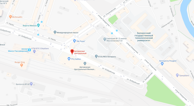 Автобусы отправляются с Центрального автовокзала Минска, который расположен рядом со станцией метро Площадь Ленина.
