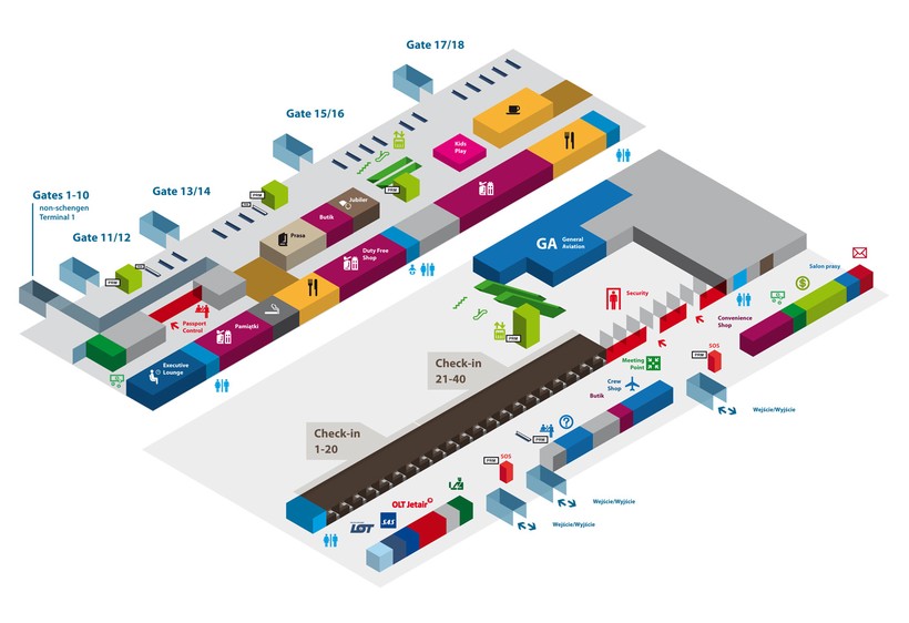Для начала - давайте немного познакомимся с самим аэропортом (чтобы не искать долго входа-выхода и остановок общественного транспорта) и его локализацией. Учтите, что Гданьск, Сопот и Гдыня образуют единую агломерацию, называемую Тройгородом (Труймясто по-польски), а поэтому почти вся коммуникация здесь входит в единую сеть. Кстати, сеть очень развитую, ведь в непосредственной близости от аэропорта живет более половины жителей целого воеводства!