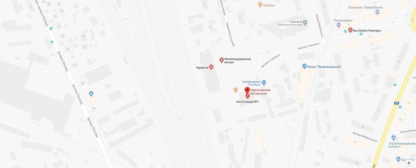 Главный минус варианта с автобусом – прибытие в Чернигов в 2 часа ночи. В этой ситуации в любом случае попадаешь в лапы местных таксистов, потому как ходить ночью по незнакомому городу – в любом случае не самая лучшая идея. Кстати, автовокзал в Чернигове располагается так же, как и в Минске – рядом с железнодорожным: