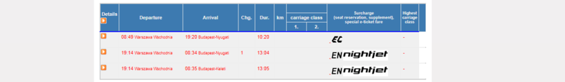 - Далее поезд Варшава – Будапешт, здесь есть два поезда прямого следования: