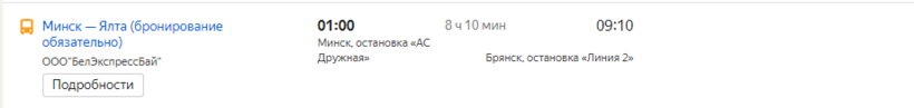 Это самый оптимальный способ добраться из Минска в Брянск, правда не очень хотелось ехать почти девять часов, однако, когда я узнала, что рейс ночной, все мои переживания отпали. Рейс выполняет автобусный перевозчик БэлЭкспрессБай. Большие туристические автобусы с кондиционером и напитками на борту, поездка оказалась достаточно комфортной:)