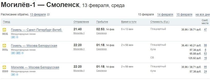 Ниже приведена информация о том, сколько часов вам потребуется, чтобы добраться от Могилева до Смоленска, а также приведена примерная стоимость проезда (средняя цена билета) на том или ином виде транспорта.