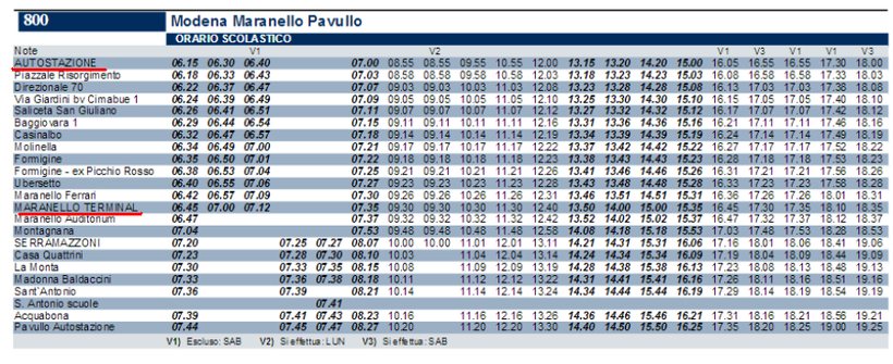 - №800. Автобусы курсируют между городами с 06:15 до 18:00. Отправляется транспорт из автостанции Модены, но в черте города делают несколько остановок. Ехать до Маранеллы нужно около 30 минут;