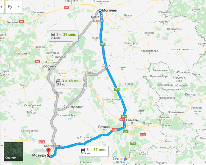 На путь из Мозыря до Могилева на машине я трачу около 23 л топлива, что обходится мне в 35 BYN или 1090 руб. Если своей машины у вас нет, но вы планируете преодолевать маршрут таким способом, аренду автомобиля в Могилеве можно посмотреть, например, здесь.