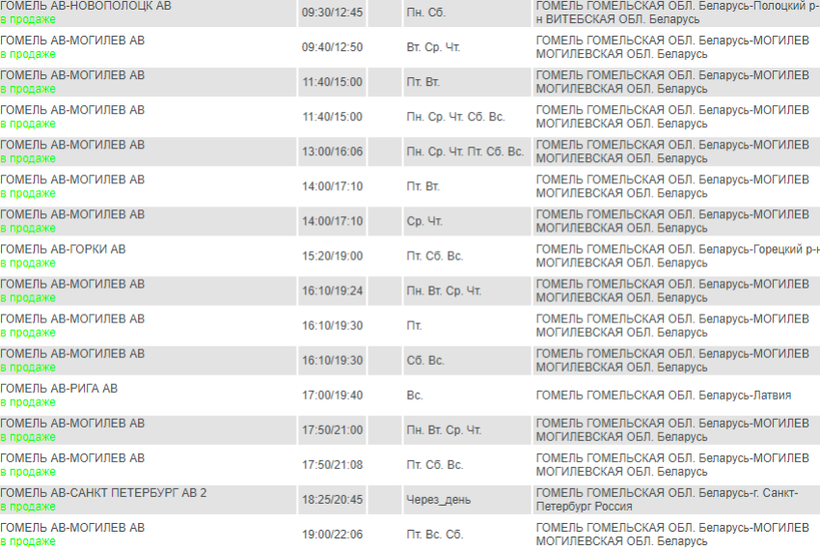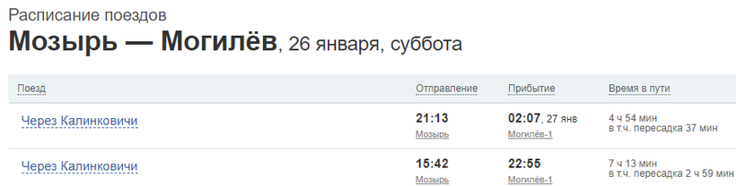 - выезд в 17:50 из Гомеля и прибытие в Могилев в 21:00.