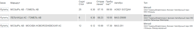 Купить билеты как на прямой автобус, так и на автобусы с пересадкой, можно на автовокзале Мозыря (ул. Шоссейная, 1Б). Но обычно я билеты оформляю через сайт системы автобусных перевозок Беларуси, что экономит мое время.