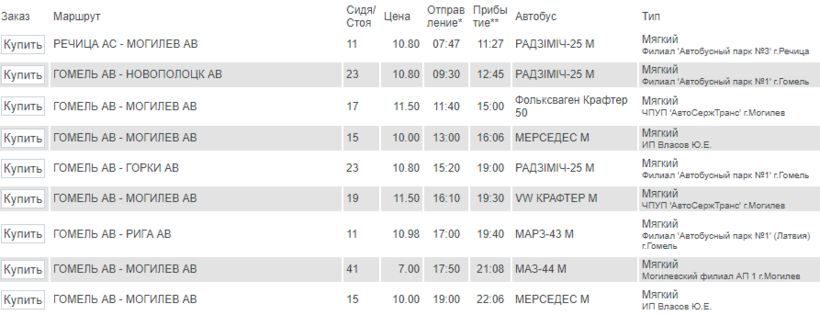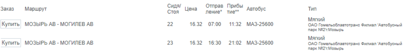 На прямой автобус Мозырь-Могилев билет обойдется в 16,32 BYN или 500 руб.