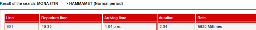 Купить билет на автобус из Монастира в Хаммамет можно на автовокзале Монастира или у водителя в автобусе, а уточнять расписание советую на сайте перевозчика SRTGN.