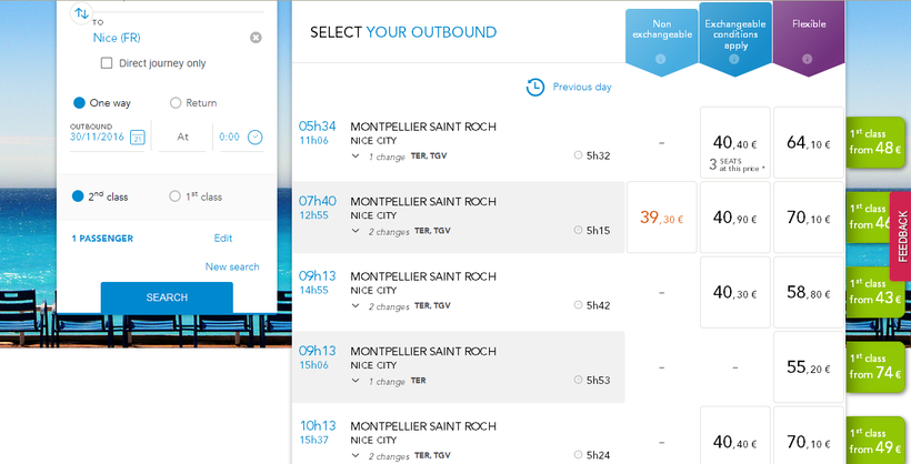 Французы плохо владеют английским языком, поэтому общение с кассиром может быть затруднительным. Если вы не определились с рейсом и хотите предварительно посмотреть расписание, то воспользуйтесь сайтом французских железных дорог. Здесь вы уточните и график движения составов, и стоимость проезда, а также сможете забронировать билет на поезде.